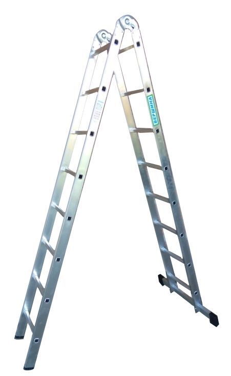 Читать все статьиЛестница 2-х секционная алюминиевая шарнирная 2*8