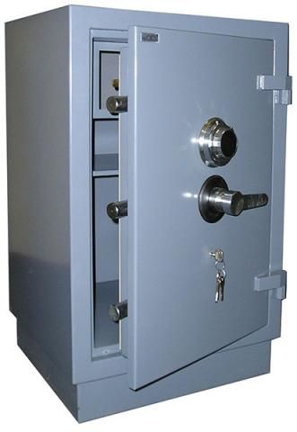 Сейф представляет собой сварную металлическую конструкцию, состоящую из наружного и внутреннего корпусов. Межстенное пространство корпуса и двери заполнено специальными составами, материалами и конструктивными элементами, обеспечивающими необходимую для данного изделия взломостойкость. Внутри сейфа располагается отсек ограниченного доступа (трейзер), запираемый на замок «почтового» типа и одна съемная полка. В дне сейфа предусмотрено отверстие Ø11 мм для возможности анкерного крепления его к полу. Дверь сейфа оборудована запорным механизмом с 2-х сторонней ригельной системой запирания (по 3 ригеля Ø28 мм вправо/влево), который блокируется ключевым сейфовым замком класса «А» фирмы «CAWI» или «MAUER», дополнительно к ключевому замку установлен механический кодовый замок фирмы «CAWI» производства Германии. Запорный механизм приводится в действие при помощи ручки. Петли сейфа наружные, открывание двери – на 180°.