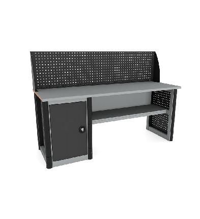 - Боковые перфорированные стенки тумбы и опоры позволяют размещать на них различные стандартные аксессуары